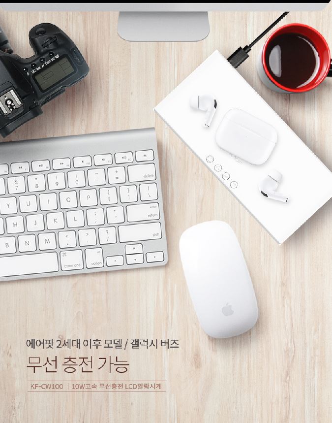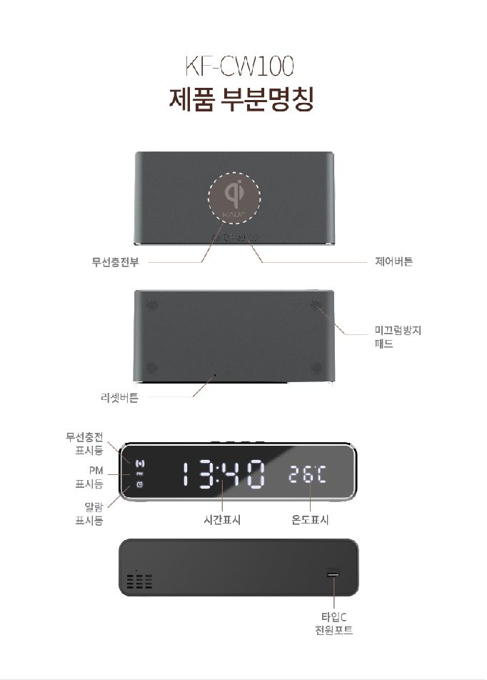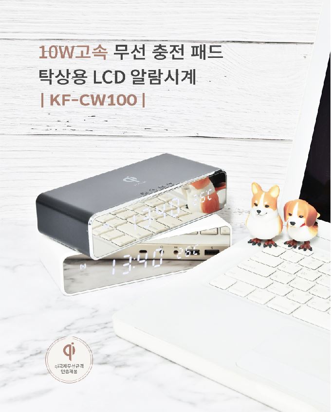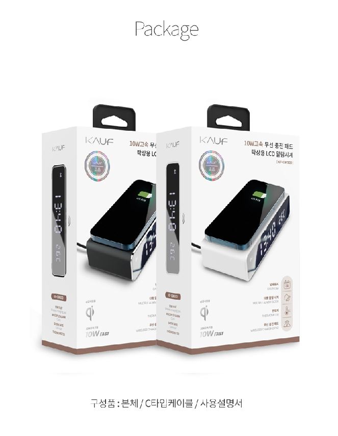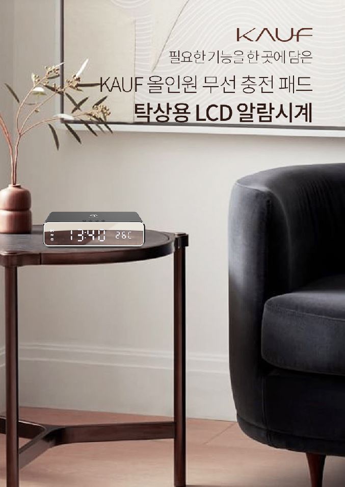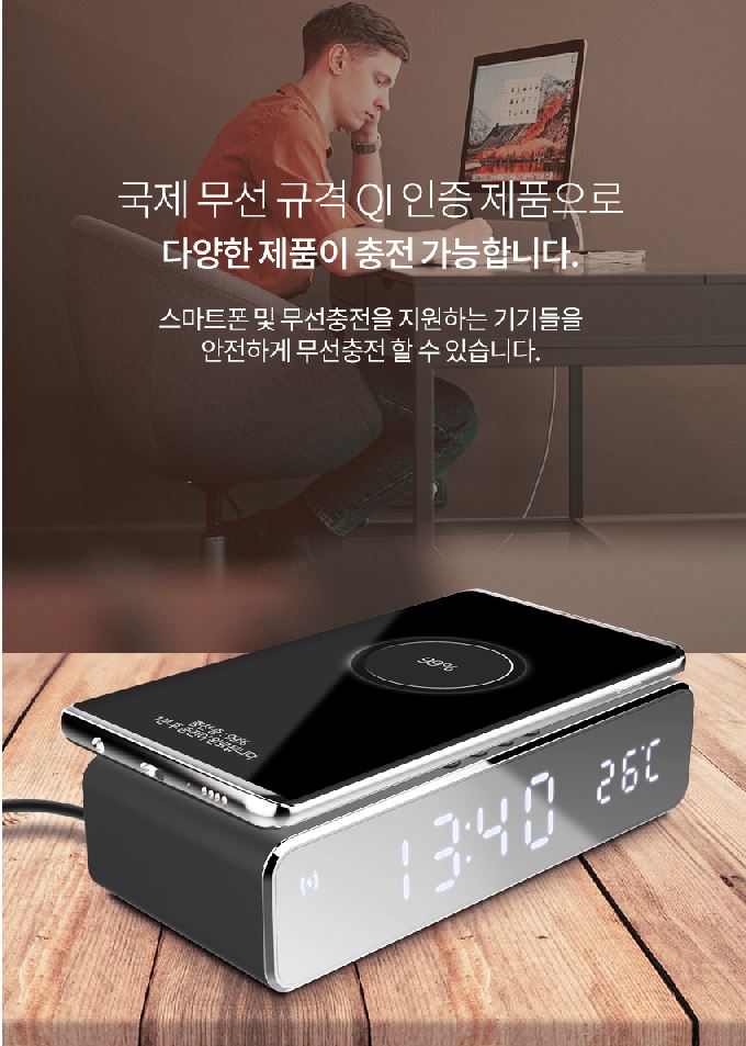 • 무선충전 탁상용 알람시계 올인원 블랙 / 화이트