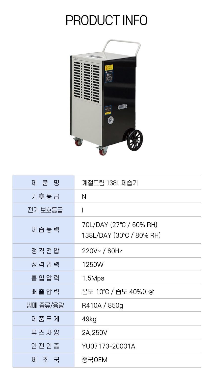 • 휴고스 계절드림 산업용제습기 파워제습 138리터 공업용 상업용 창고용 대용량 스마트 제습기