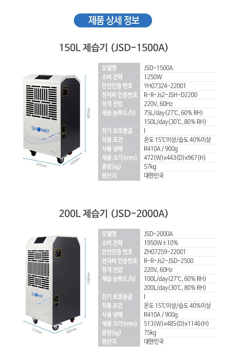 스노웨이 업소용제습기 제습기 일반용 산업용 공업용 150리터 200리터 250리터 대용량 스마트 제습
