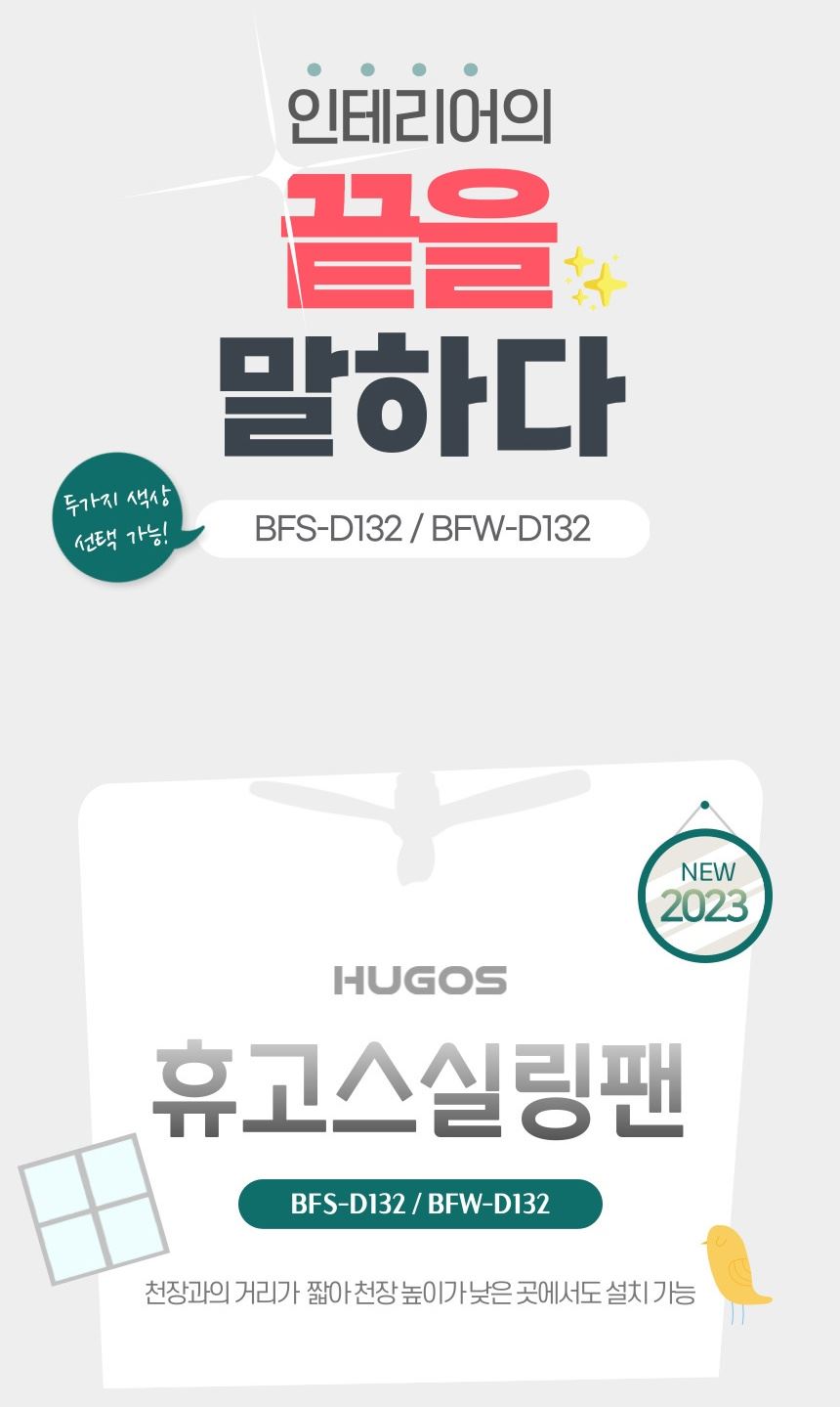 휴고스 실링팬 BFS-D132 타프팬 천장형선풍기 화이트 52인치(132cm) 정방향 역방향 BLDC모터 홈