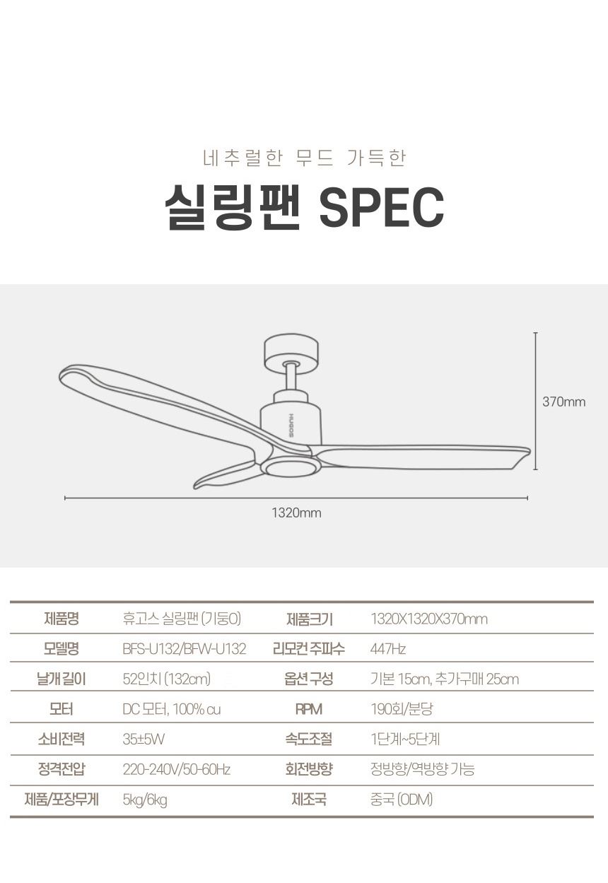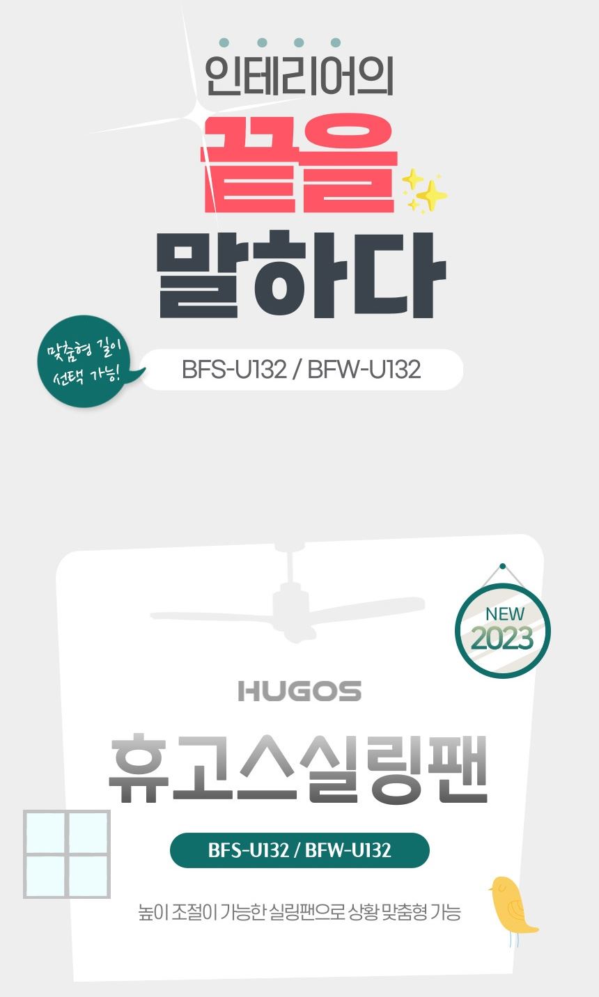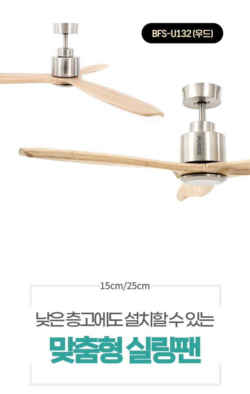 • 휴고스 실링팬 BFS-U132 타프팬 천장형선풍기 화이트 52인치(132cm) 정방향 역방향 BLDC모터 홈