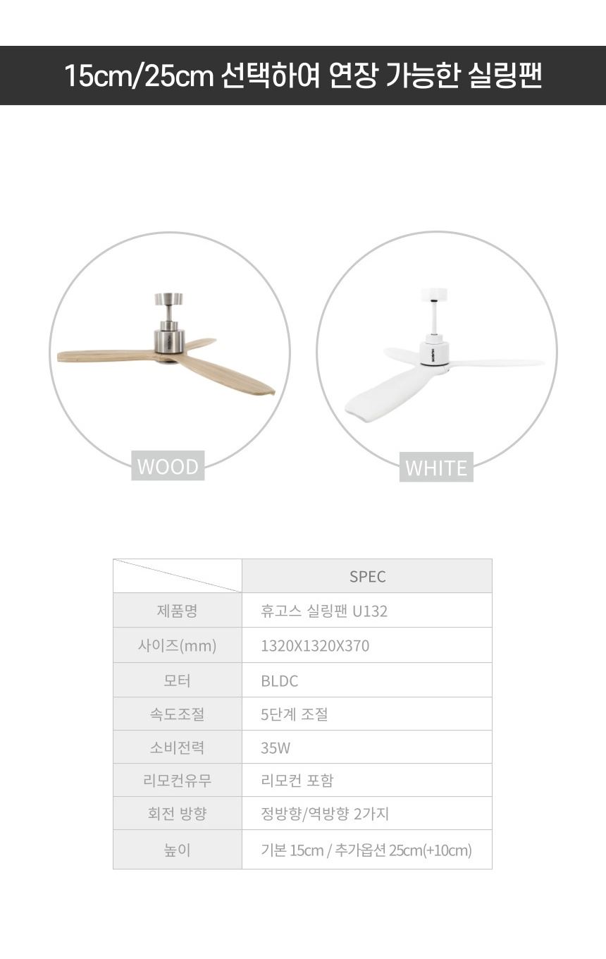 휴고스 실링팬 BFS-U132 타프팬 천장형선풍기 화이트 52인치(132cm) 정방향 역방향 BLDC모터 홈 / 사라컴퍼니님의 스토어 / 디비디비 / 구매하기 / 특가할인