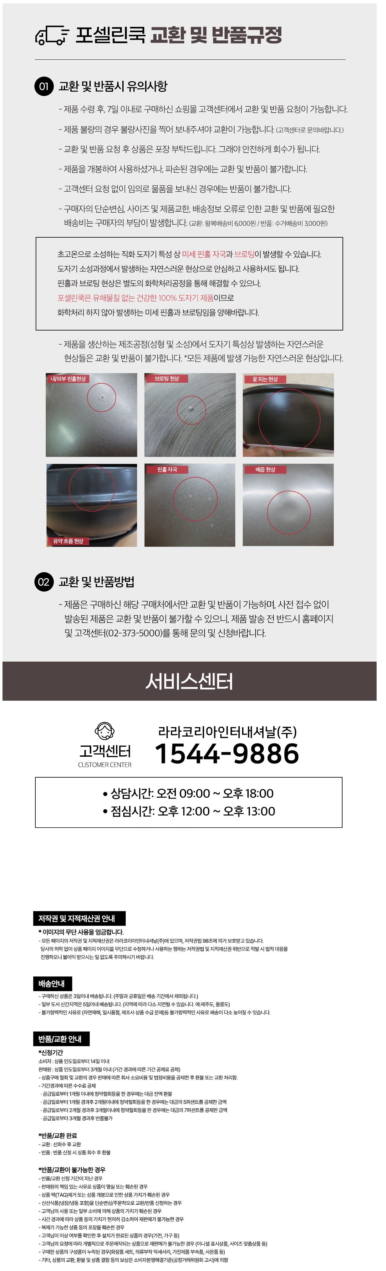 ㆍ 제품의 불량이 아닌 소비자의 귀책사유로 제품의 불량이 발생한 경우에는 환불, 교환을 받으실 수 없습니다.