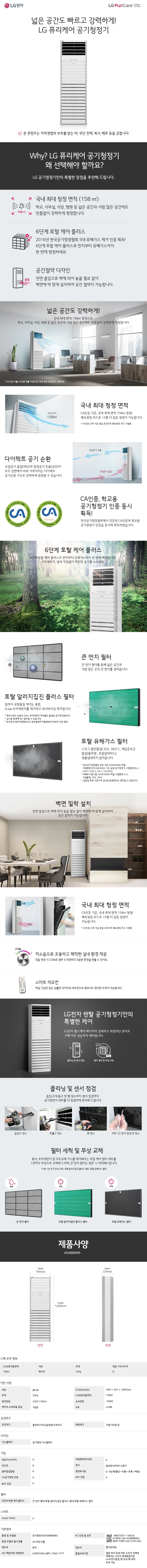 • [LG전자]LG퓨리케어대형공기청정기(48평형)/AS488BWR/사은품지급/저소음/학교,사무실,식당,병원/국내최대청정면적