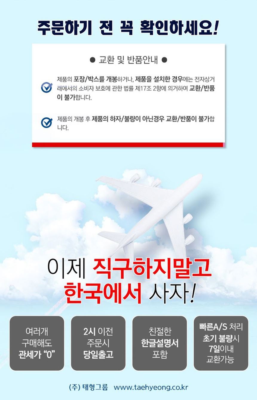 ㆍ 사용 중 발생한 하자의 환불/교환/수리 등은 공정거래위원회 소비자분쟁해결기준에 준하여 처리됩니다. (제조사/브랜드 A/S센터로 문의)