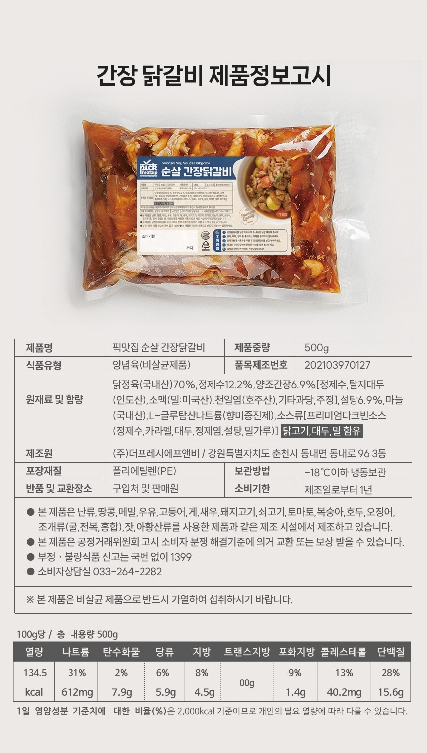 제품명 픽맛집 순살 춘천양념닭갈비