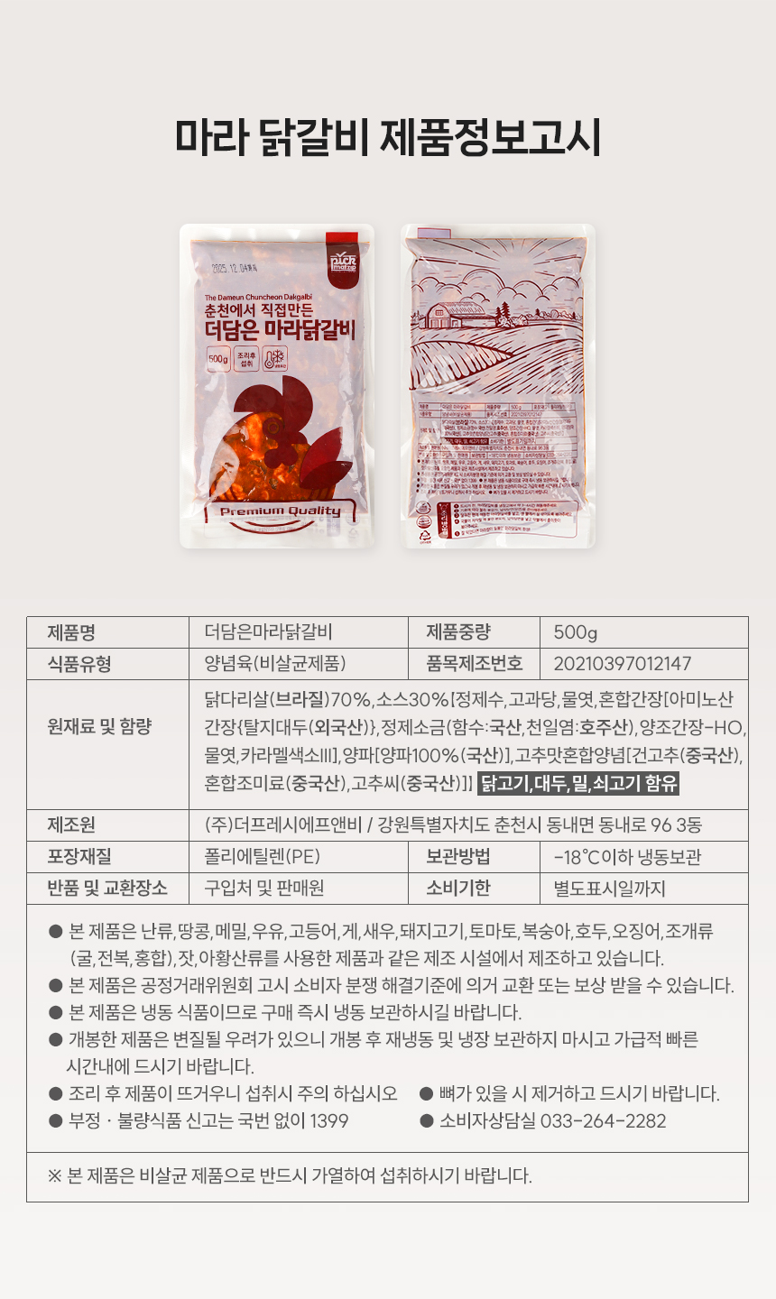 제품명 더담은 마라닭갈비