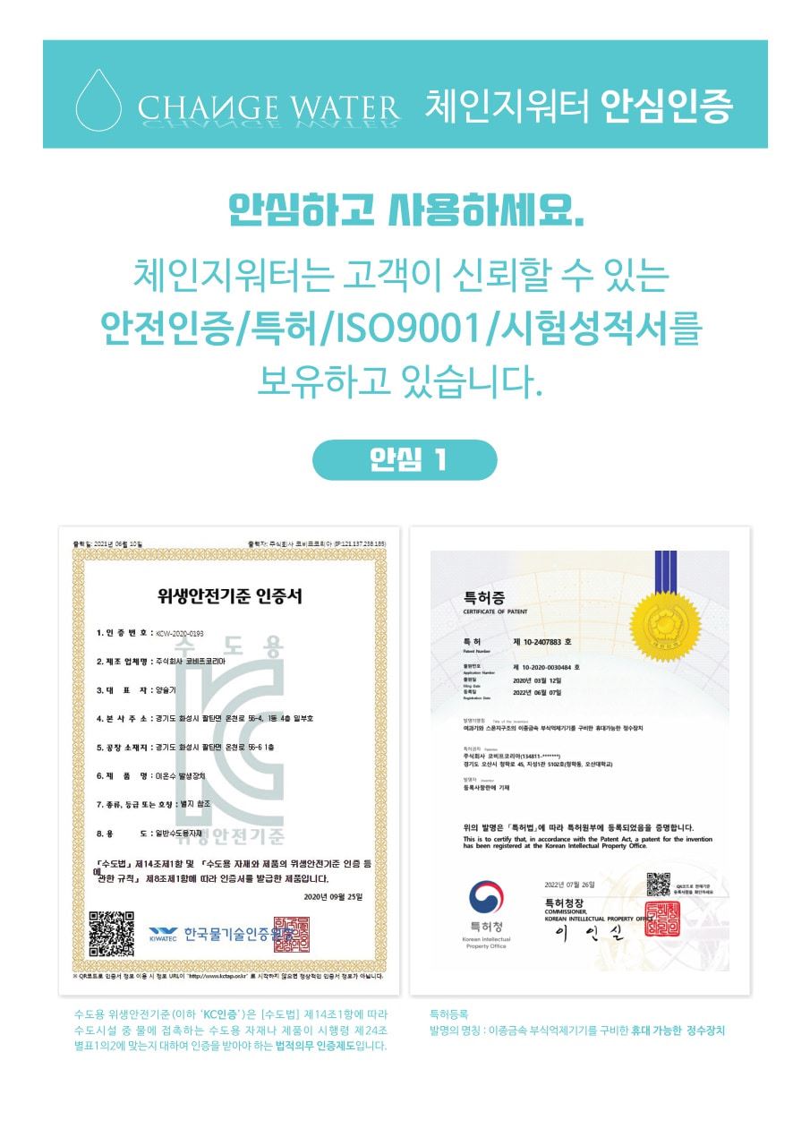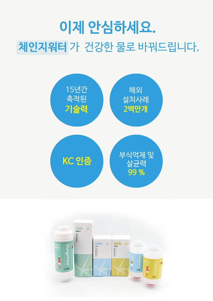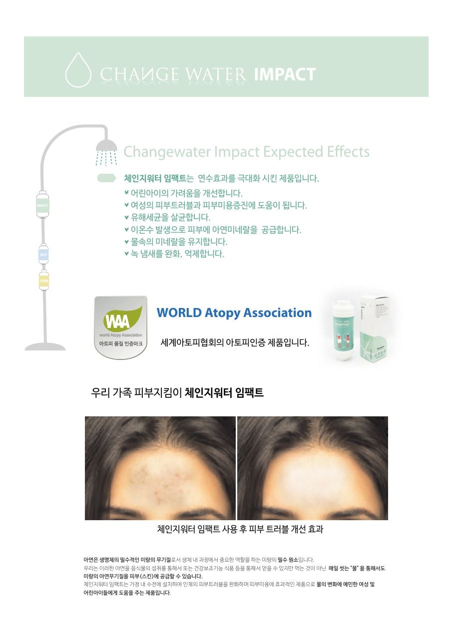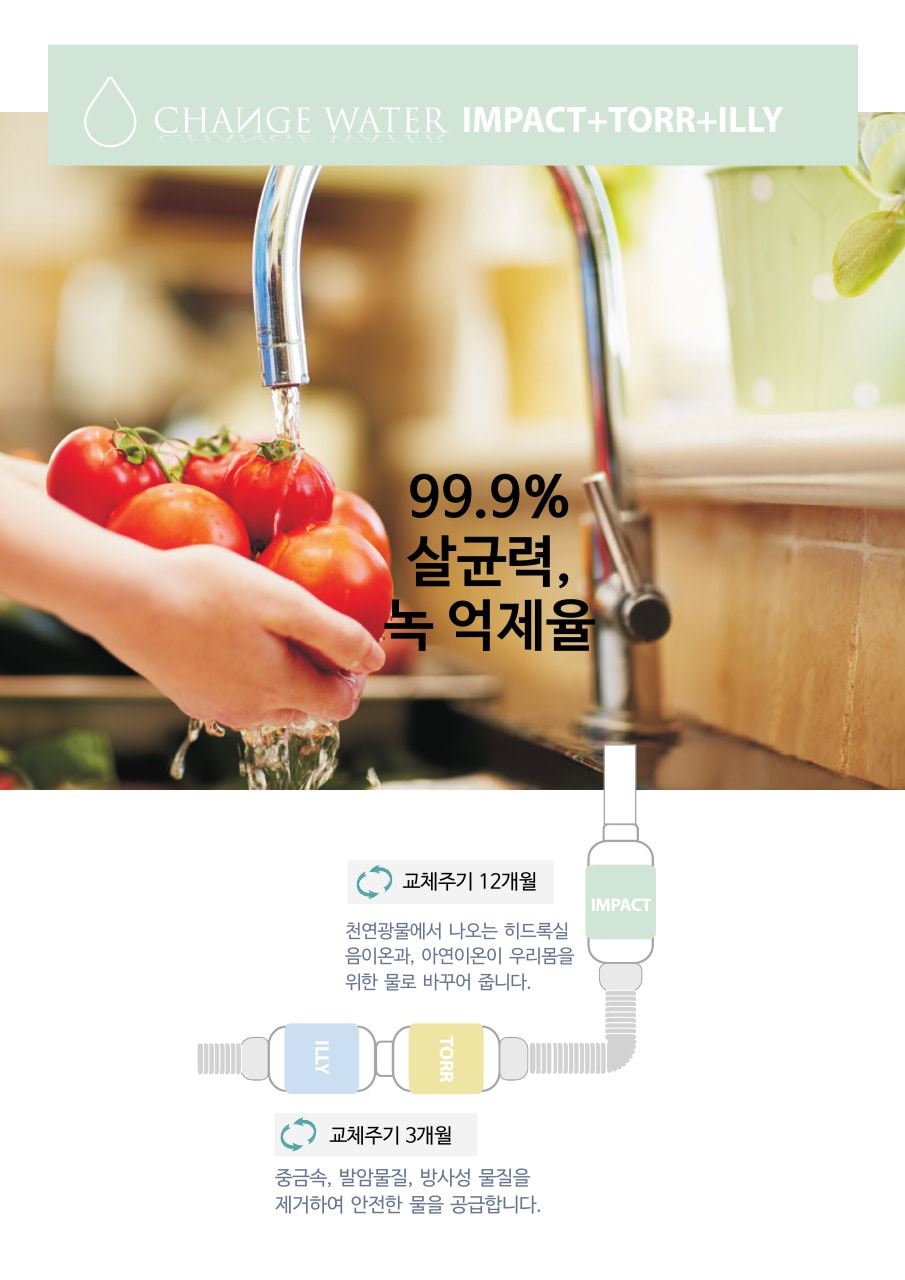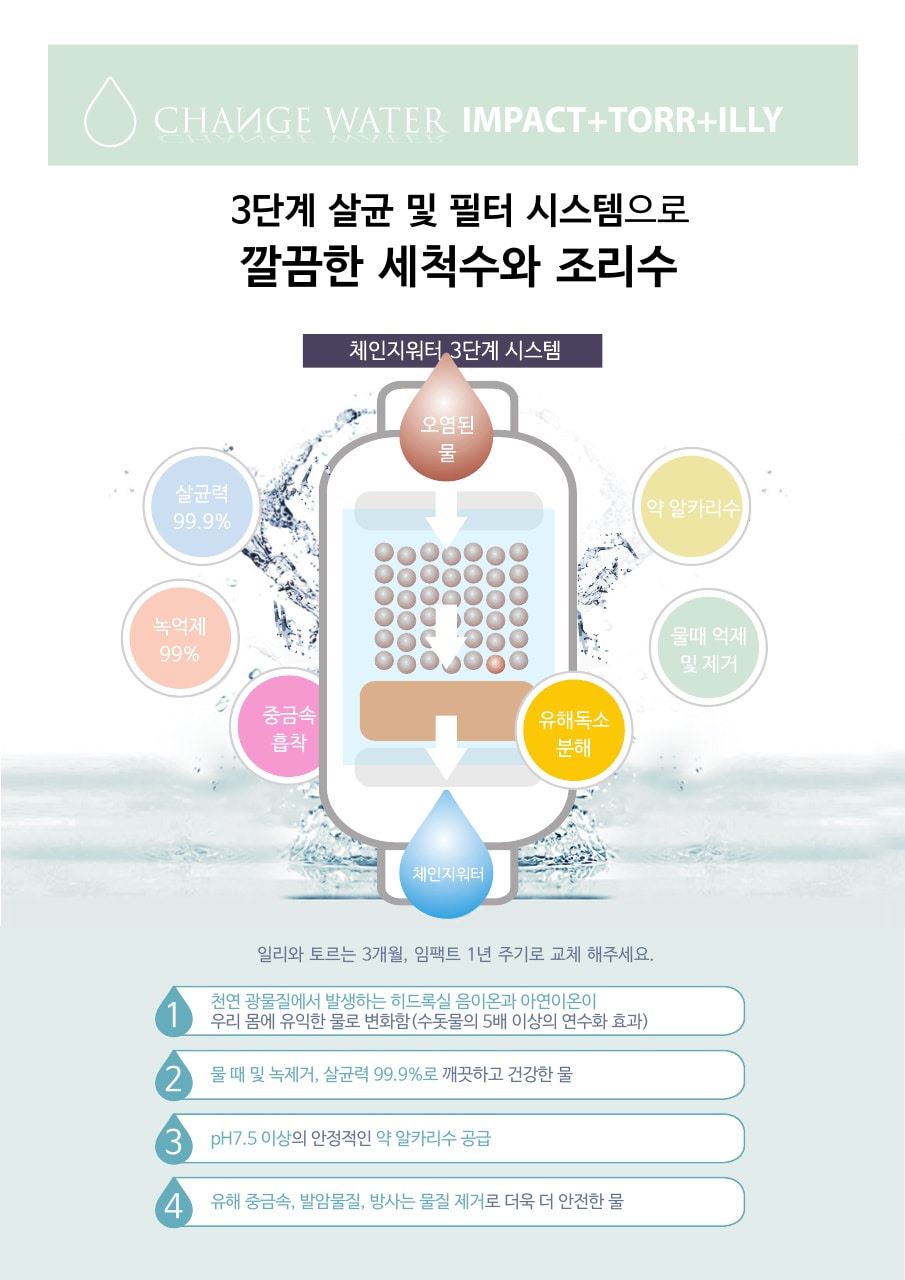 (체인지워터) 임팩트 연수기(주방용/샤워기용/세면대용/세탁기용)/물때및 녹물 염소 제거/아토피/약알카리수