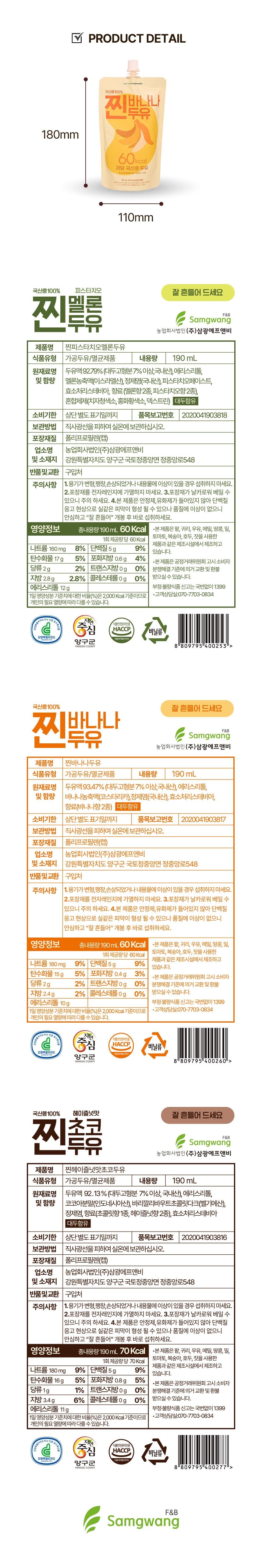 • (삼광에프앤비) 저당 국산콩 찐두유(190mlX14개입/초코 두유/멜론 두유/바나나 두유)/국산콩