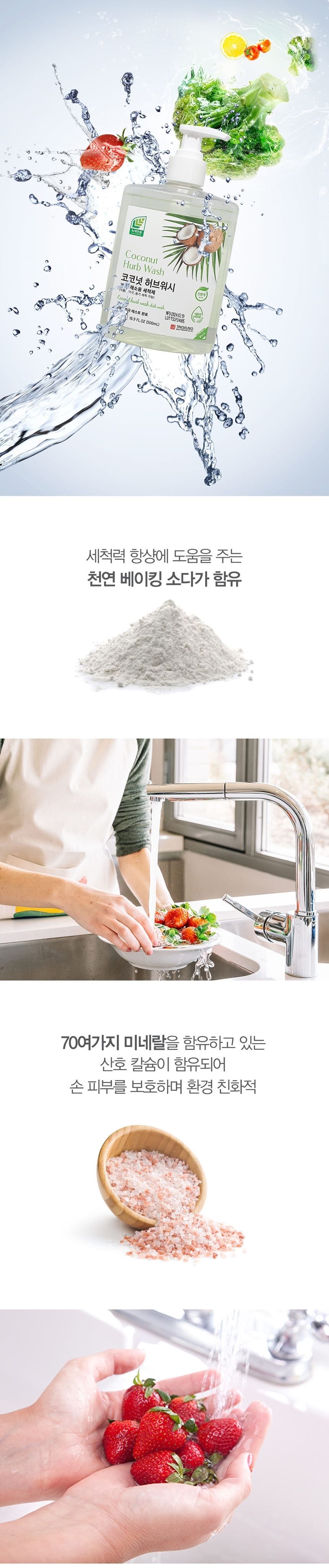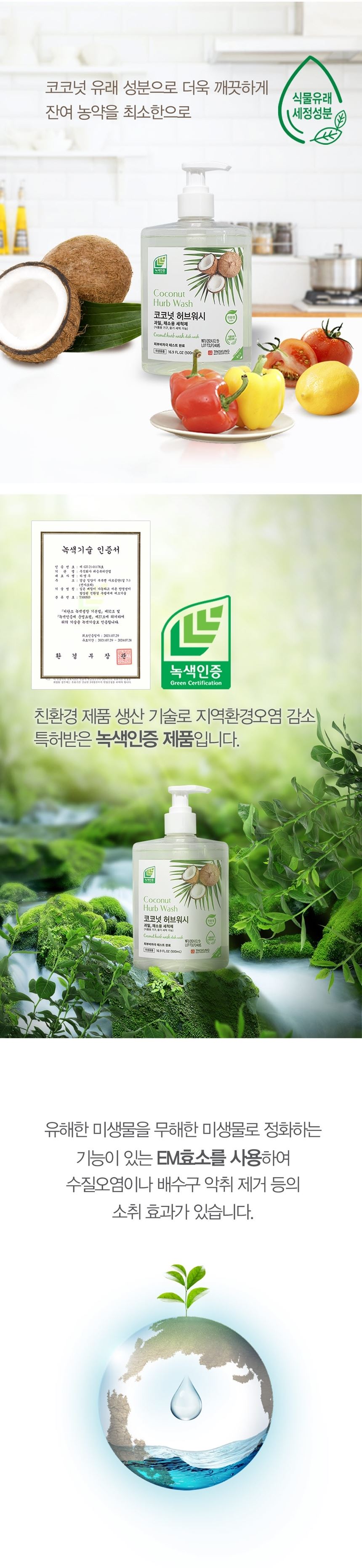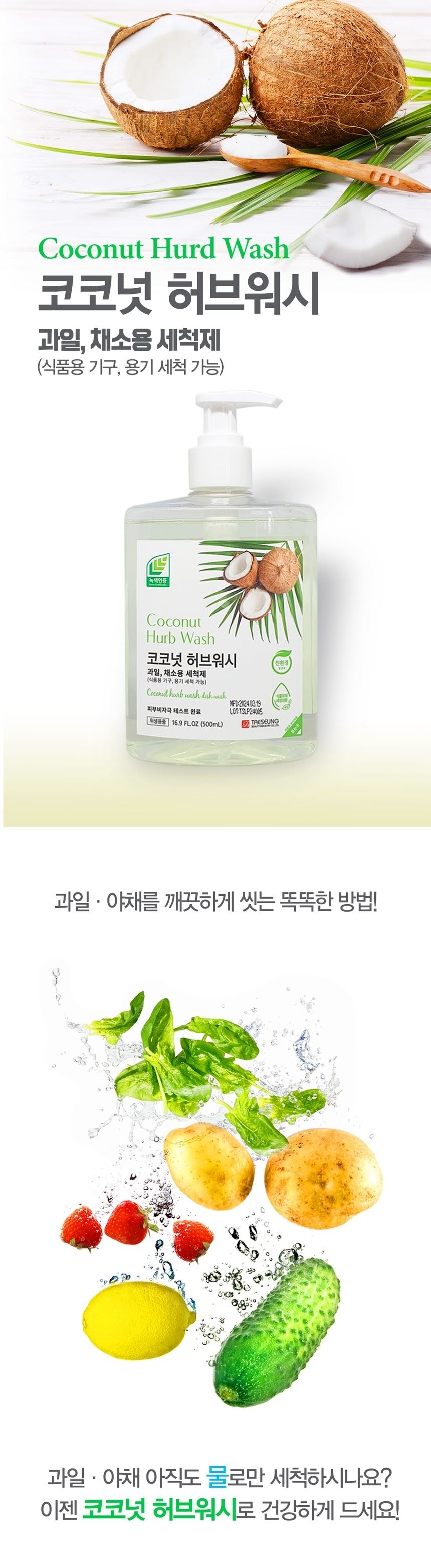코코넛 허브워시 과일 채소용 주방세제세트(본품 500ml+리필 400ml)/식기 조리기구 세척/녹색 인증