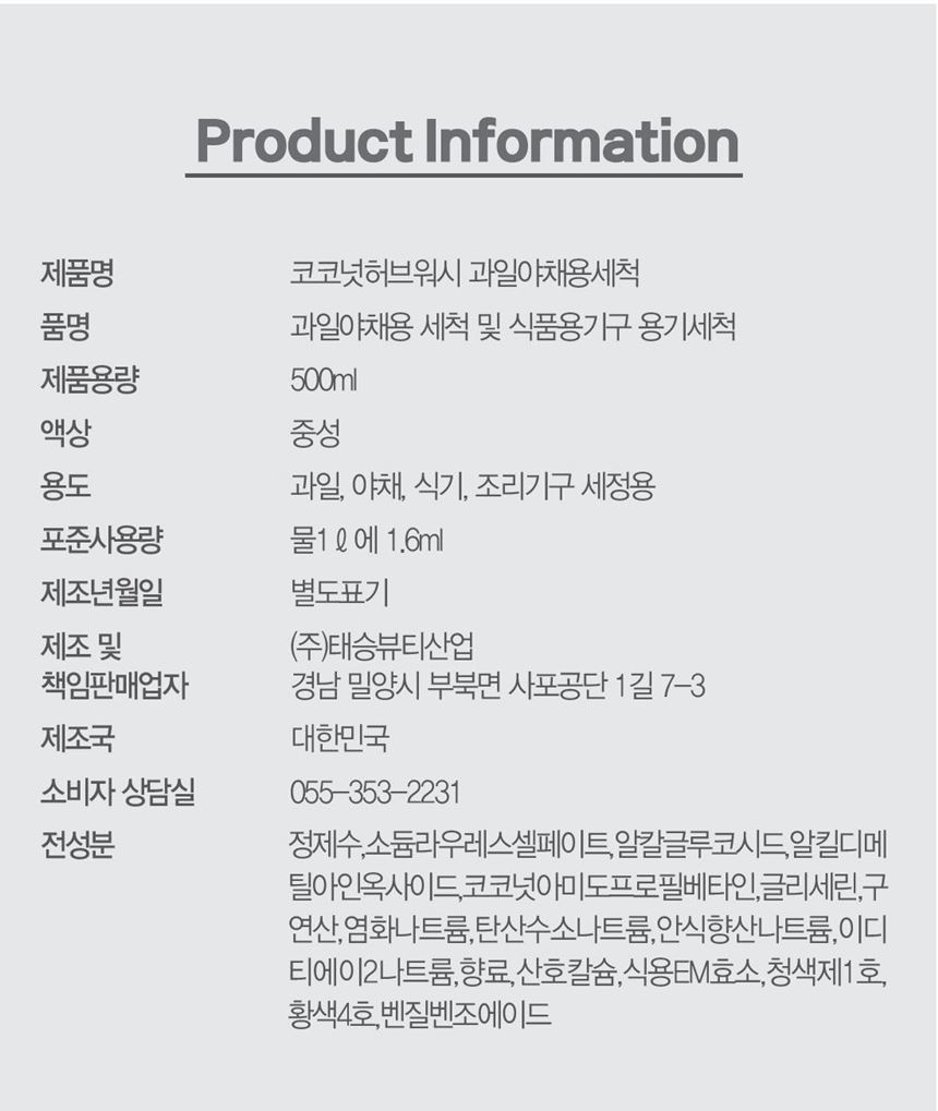 코코넛 허브워시 과일 채소용 주방세제세트(본품 500ml+리필 400ml)/식기 조리기구 세척/녹색 인증 / 참좋아요쇼핑몰 / 디비디비 / 구매하기 / 특가할인