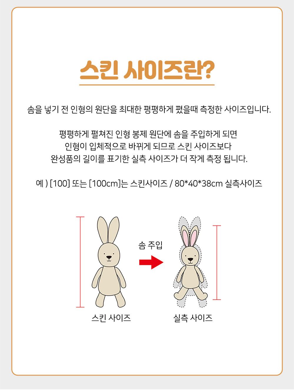 | 취급방법 및 취급시 주의사항, 안전표시(주의, 경고 등) | 1. 입에 넣거나 입으로 빨지 마세요. 2. 화기나 불에 직접 닿거나 가까이하지 마세요. 3. 직사광선에 장시간 노출시키지 마세요. 4. 깔고 앉지 마세요. 5. 날카로운 것을 가까이하지 마세요. 6. 세탁 시 중성세제를 사용하여 미온수로 세탁을 권장합니다. 7. 플라스틱 부자재가 들어간 상품일 경우 흠집이 날 가능성이 있기에 더욱 손세탁을 권장합니다. · 8. 세탁기를 사용해도 무방하나, 헹굼시 반드시 섬유 유연제를 사용하시기 바랍니다. · 9. 탈수시 인형 안의 솜이 뭉칠 수 있으나, 그늘에서 하루 이상 건조 후 솜을 탁탁 쳐서 모양을 만지면 금방 되돌아옵니다. 10. 락스나 표백제를 사용할 경우 원단의 색상이 변질될 수 있습니다. 11. 건조시 그늘에서 1~2일 이상 건조후 손으로 가볍게 치면서 모양 |