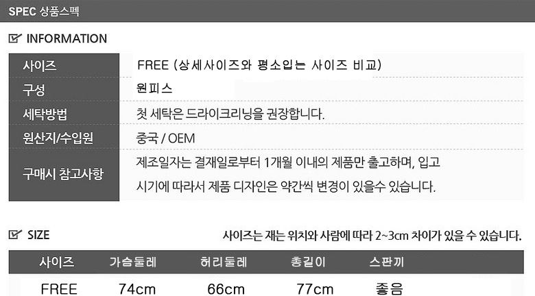 치수 상품상세참조