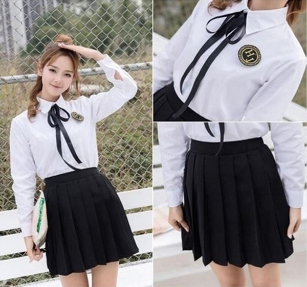 • 여성 셔츠 치마 교복 세트 와펜 타이