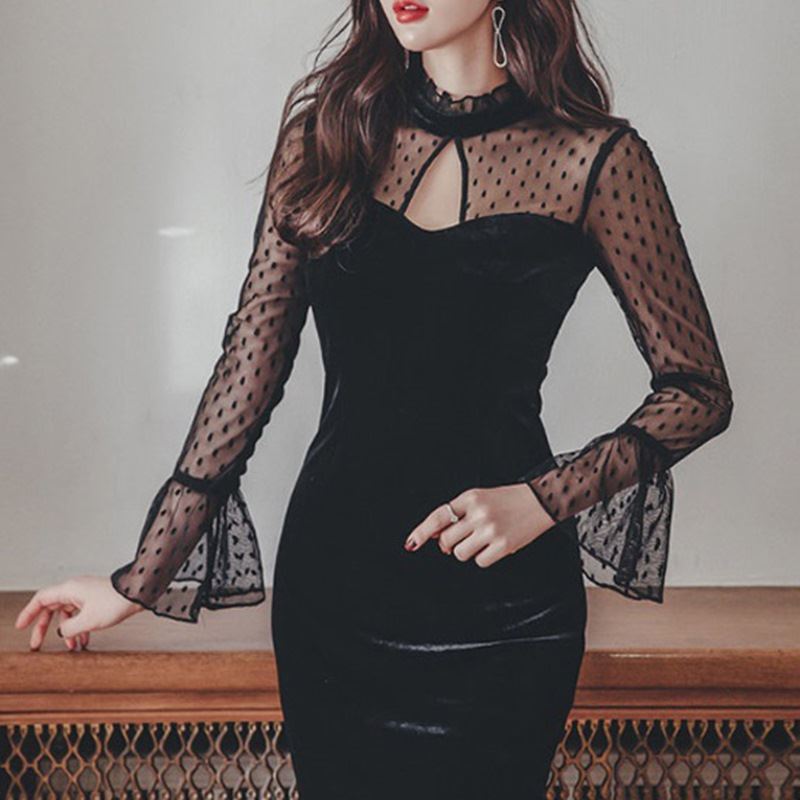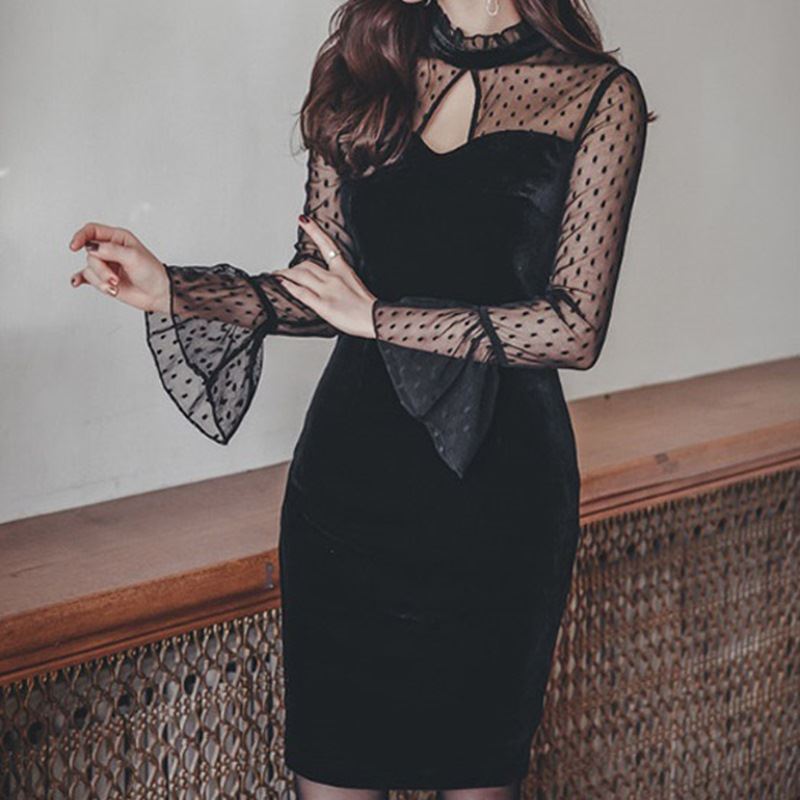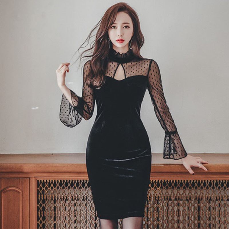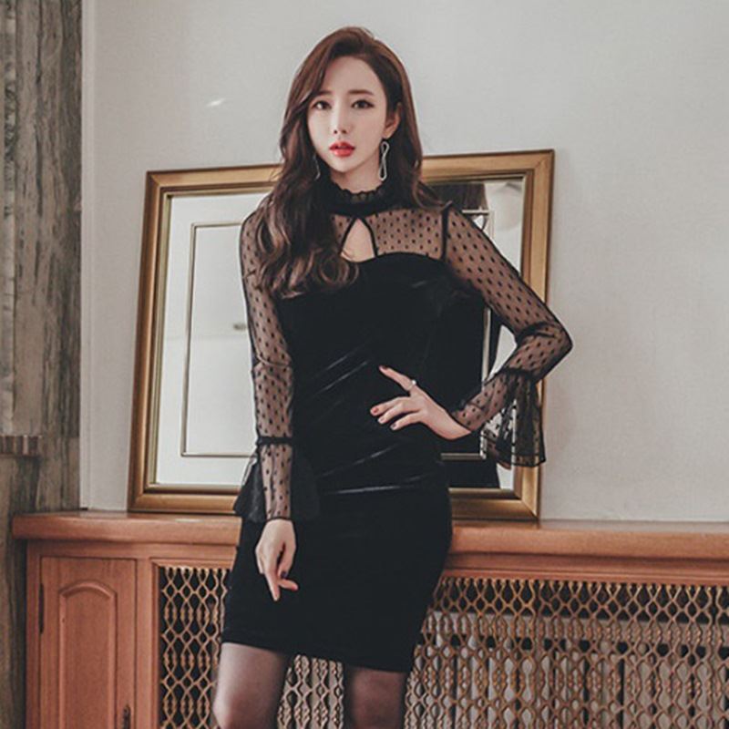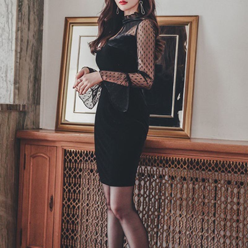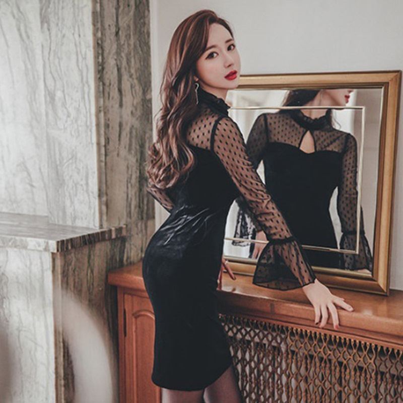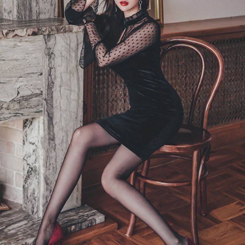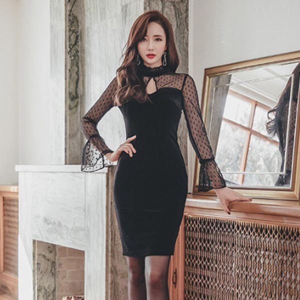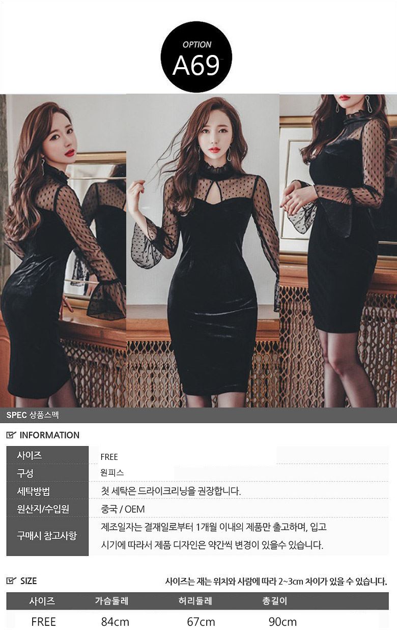 • -도트 진주 시스루 앞트임 섹시 미니 원피스