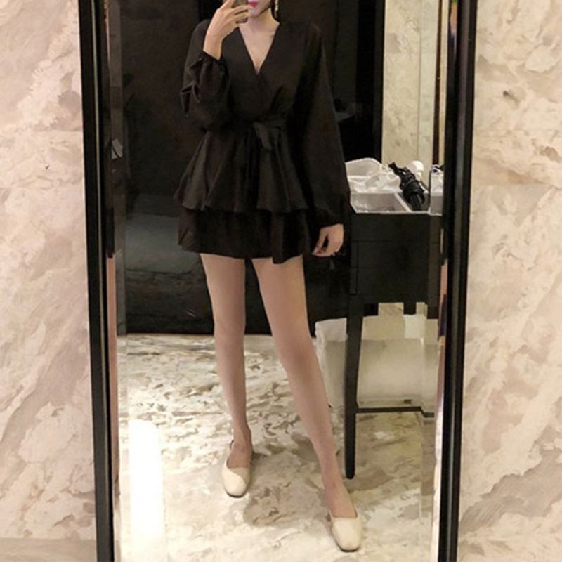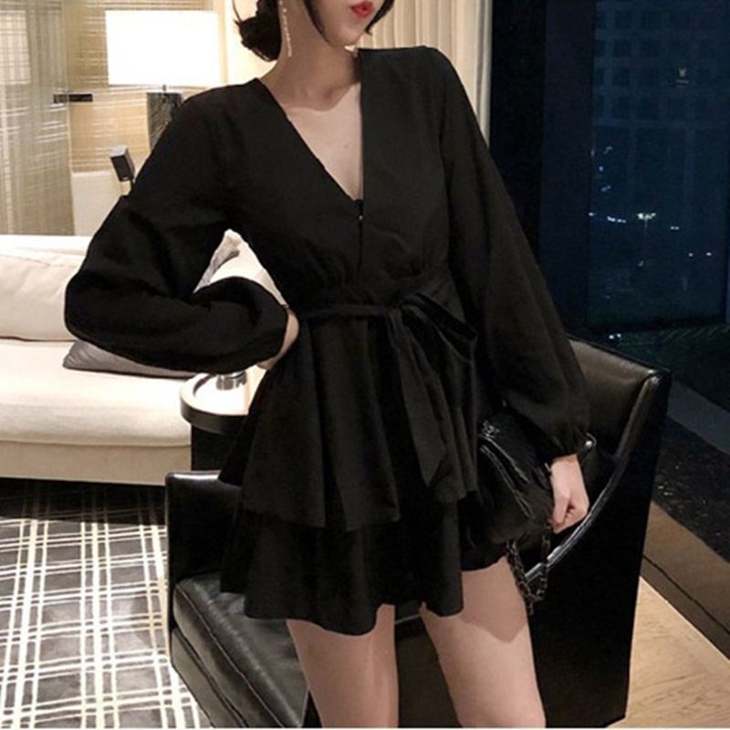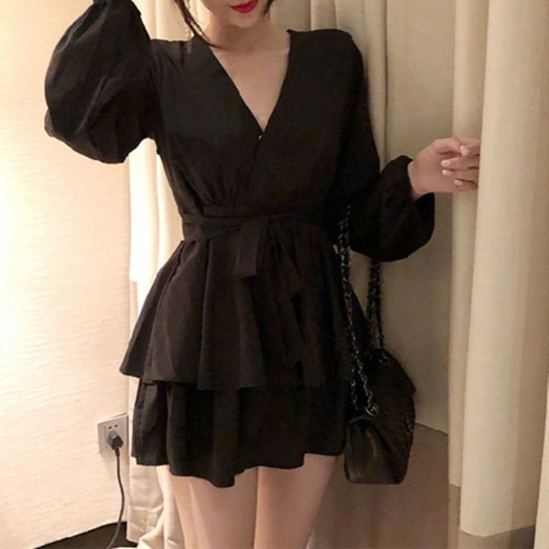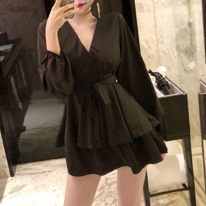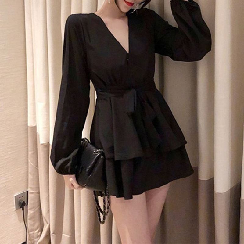 • 여성 블랙 긴팔 튤립 섹시 미니원피스