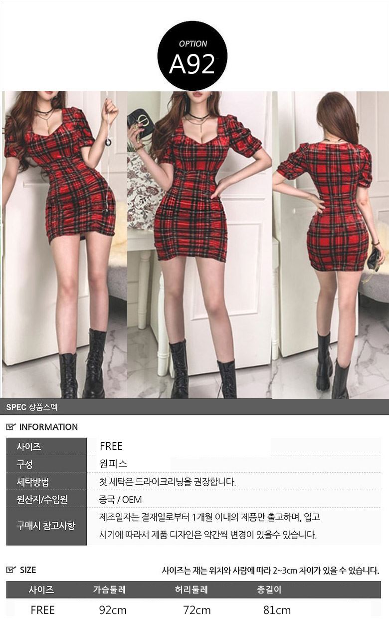 여성 체크 오픈 레드원피스