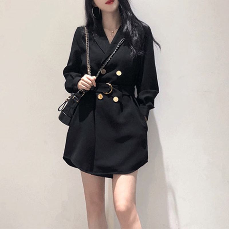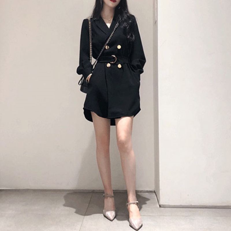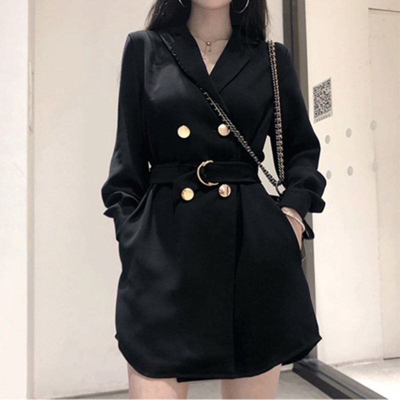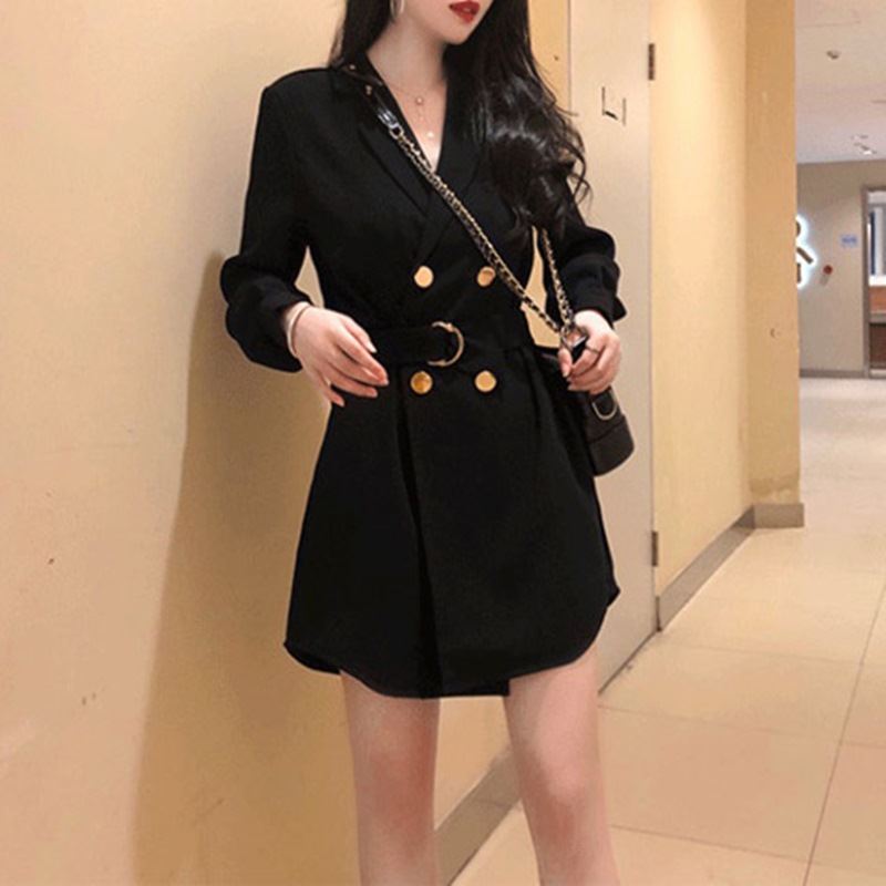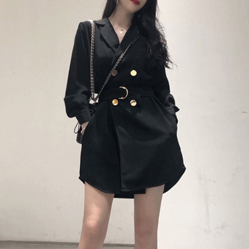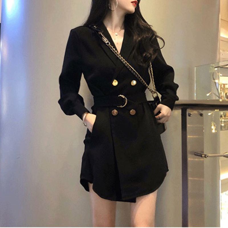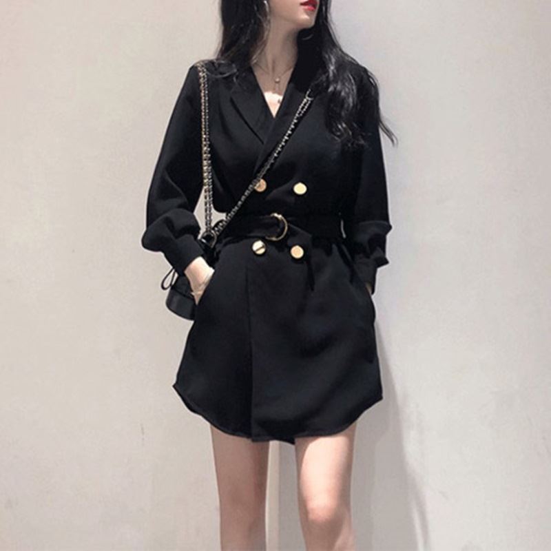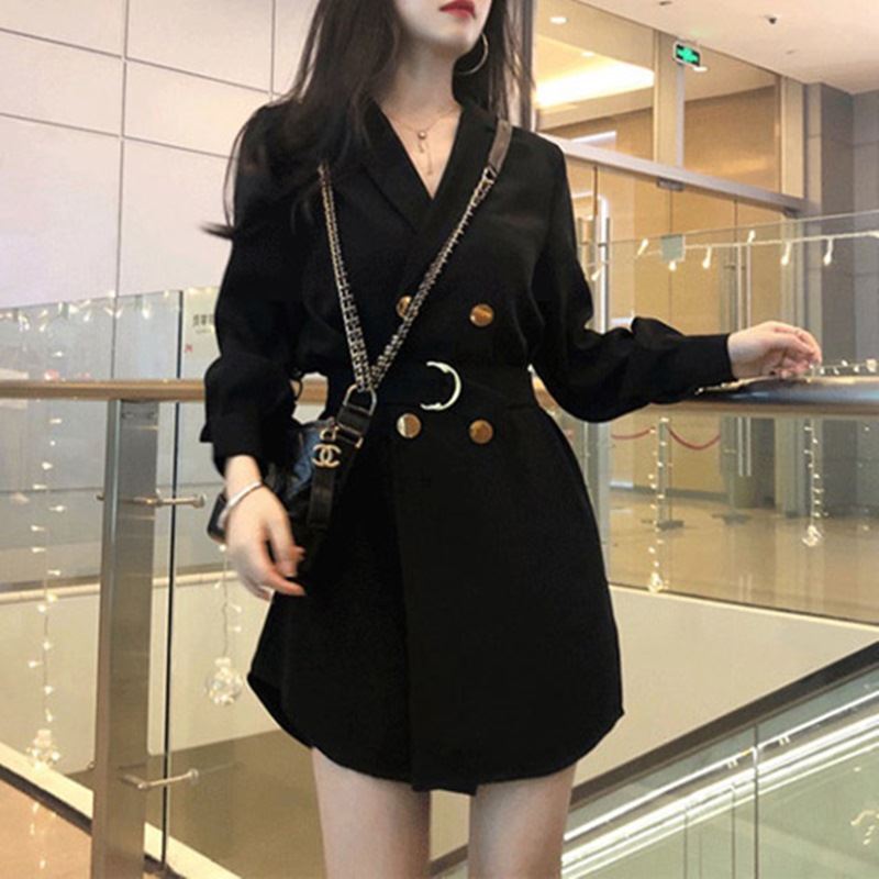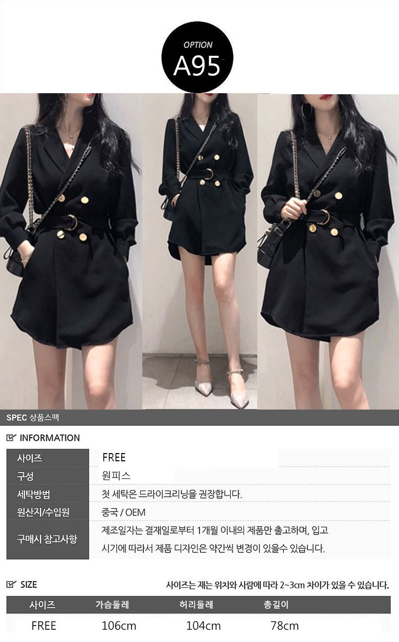 • 여성 오버 단추 블랙원피스