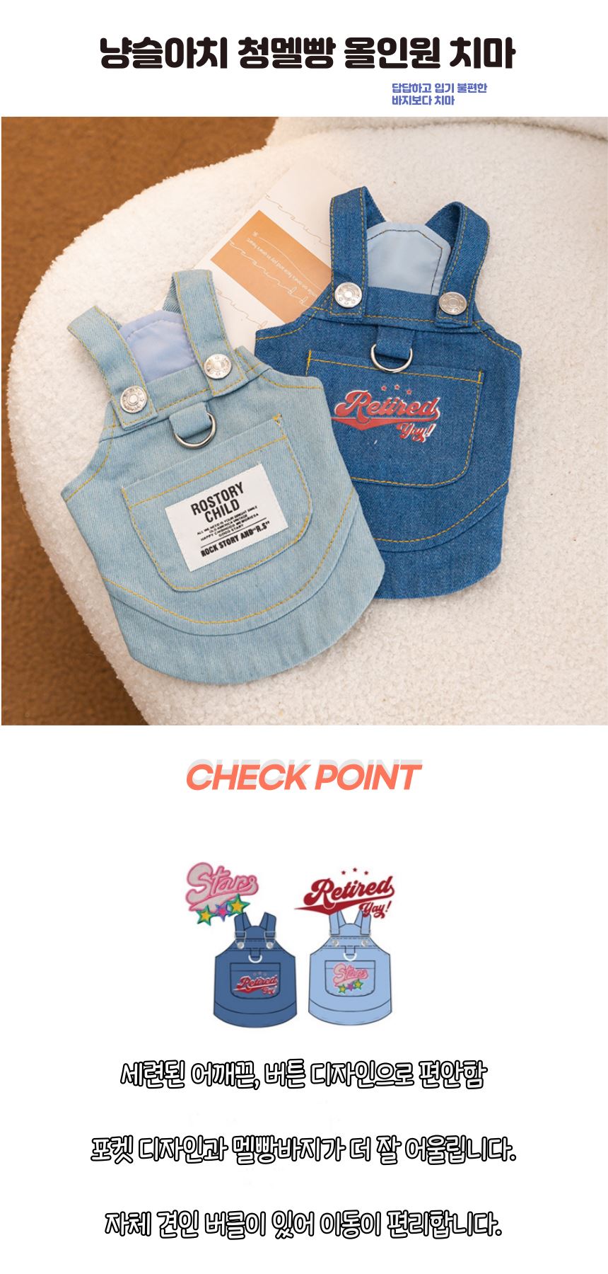 냥슬아치 고양이 강아지 옷 청멜빵 티셔츠 바지 치마 애견