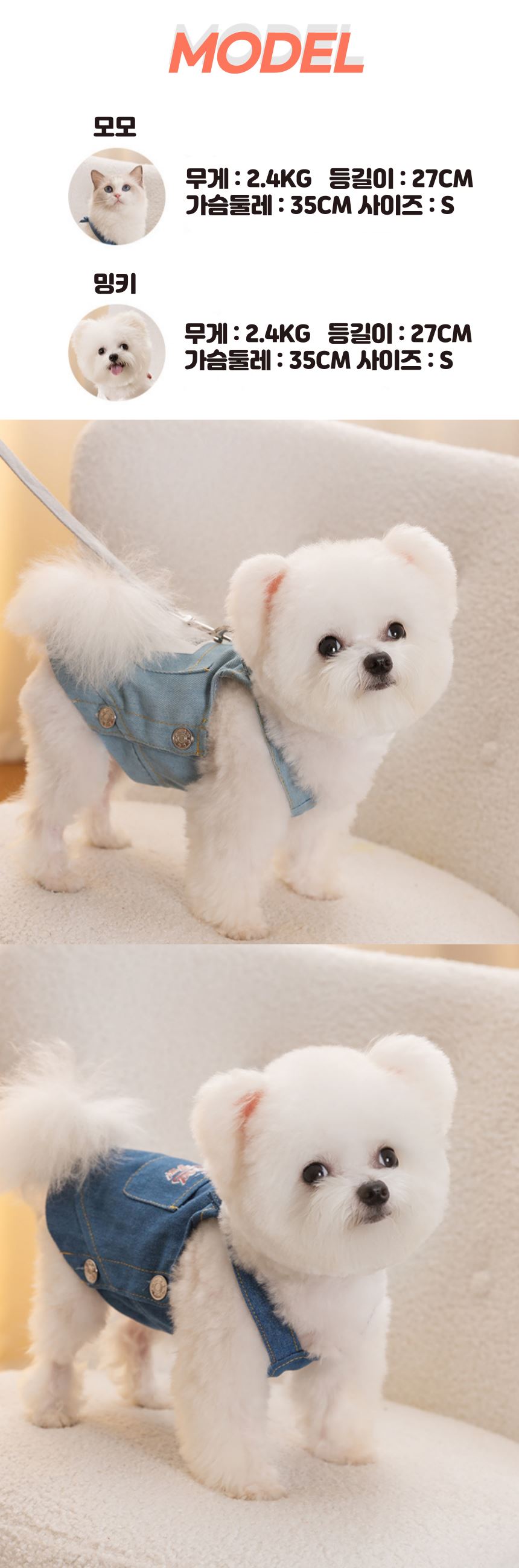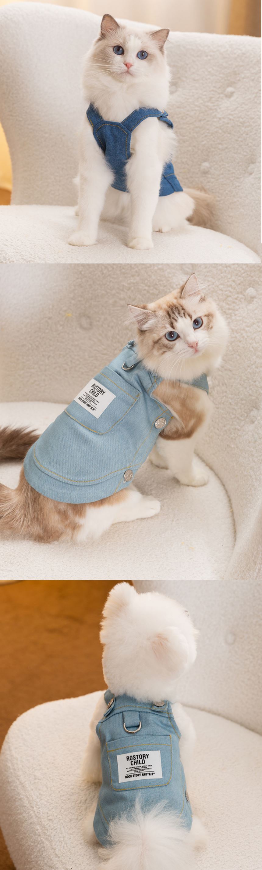 품명 냥슬아치 고양이 강아지 옷 청멜빵 티셔츠 바지 치마 애견