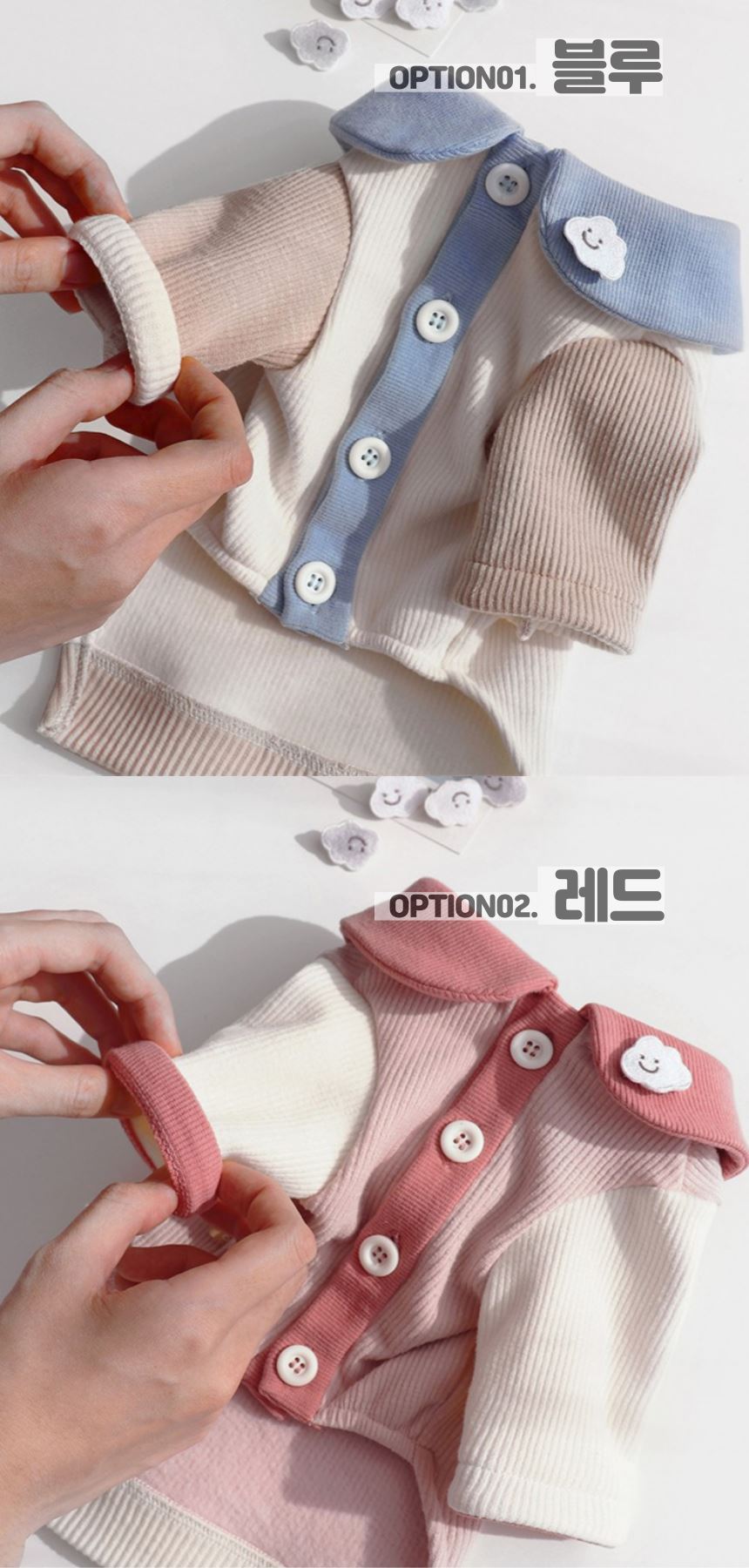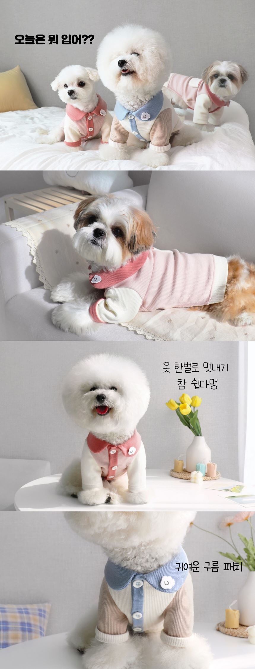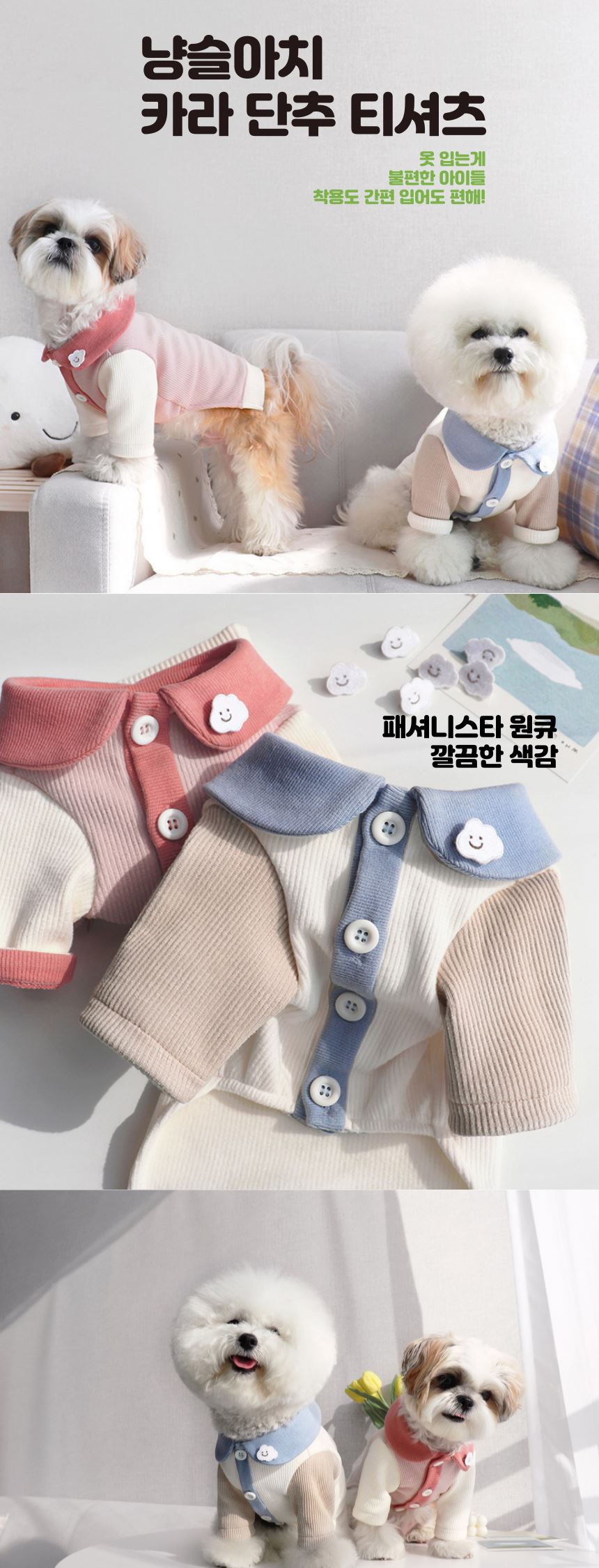 • 냥슬아치 고양이 강아지 옷 카라 단추 티셔츠 실내복