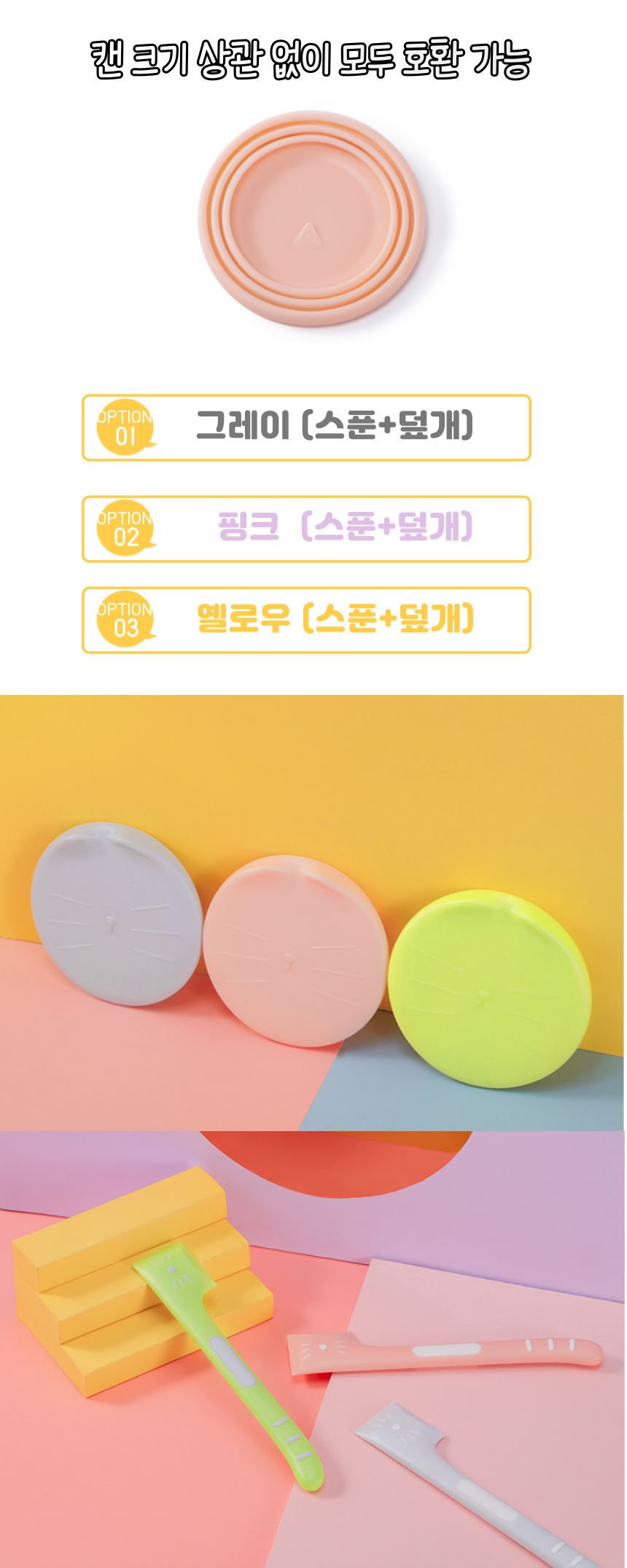 • 냥슬아치 캣페이스 습식 간식 덮개 뚜껑 캔마개+스푼 세트