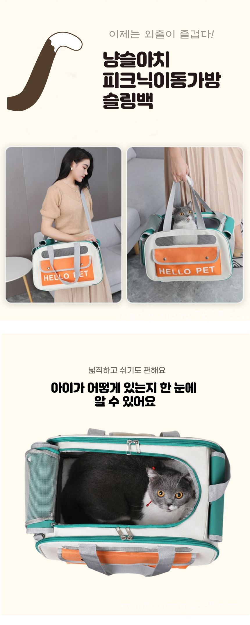 • 냥슬아치 고양이 강아지 피크닉 기내용 슬링백 애견 이동가방 이동장