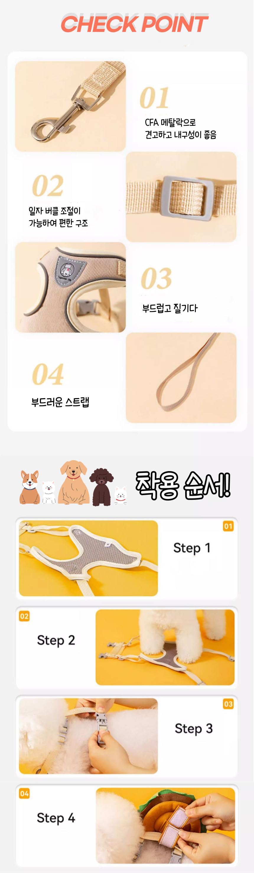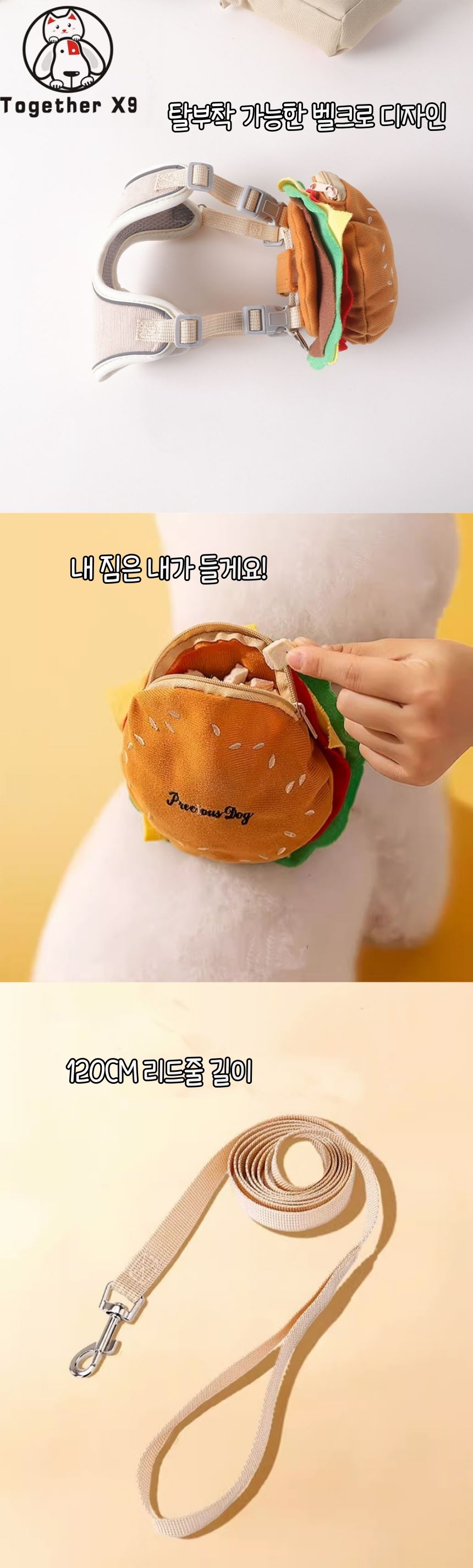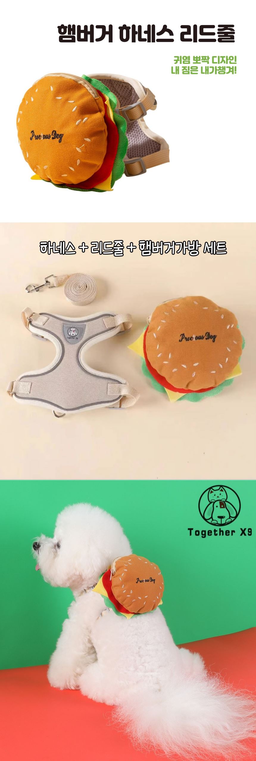품명 냥슬아치 강아지 햄버거 하네스 가슴줄 리드줄 애견 세트