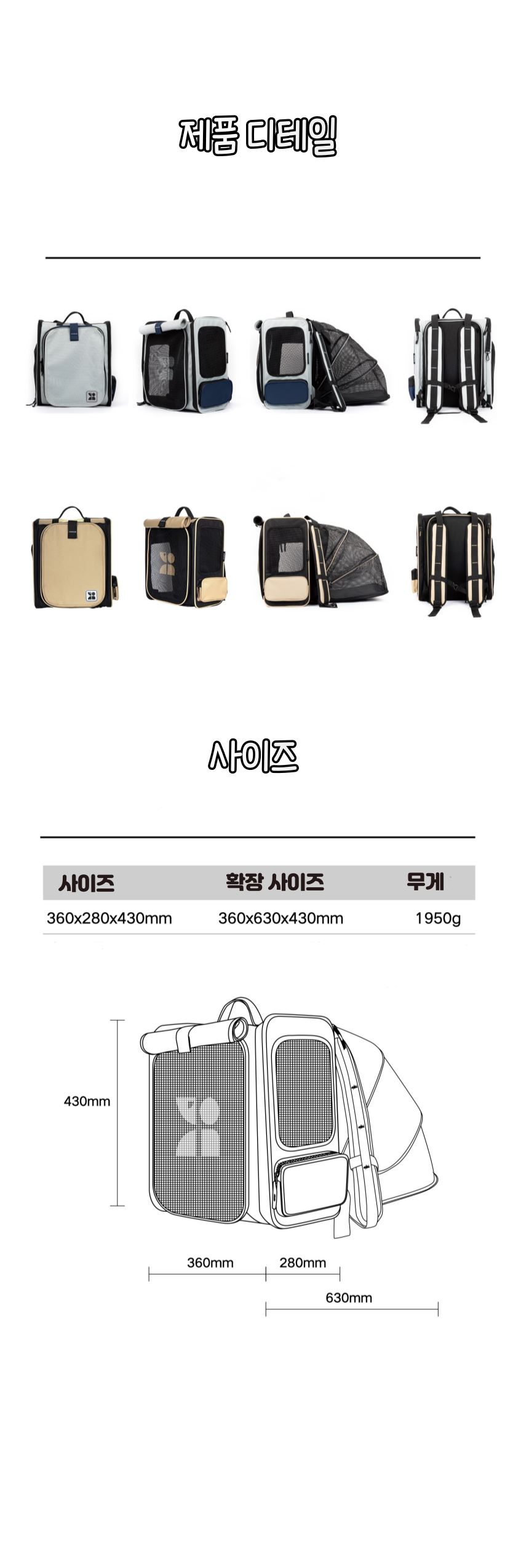 품명 냥슬아치 고양이 강아지 확장형 백팩 가방 이동장 캐리어