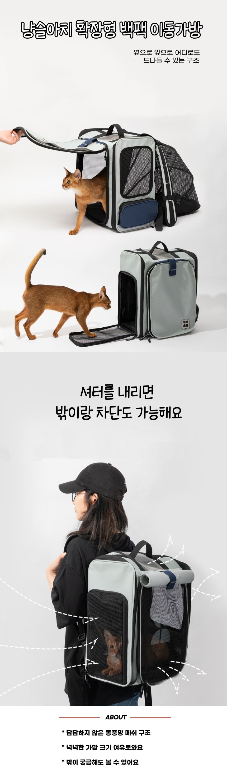 • 냥슬아치 고양이 강아지 확장형 백팩 가방 이동장 캐리어