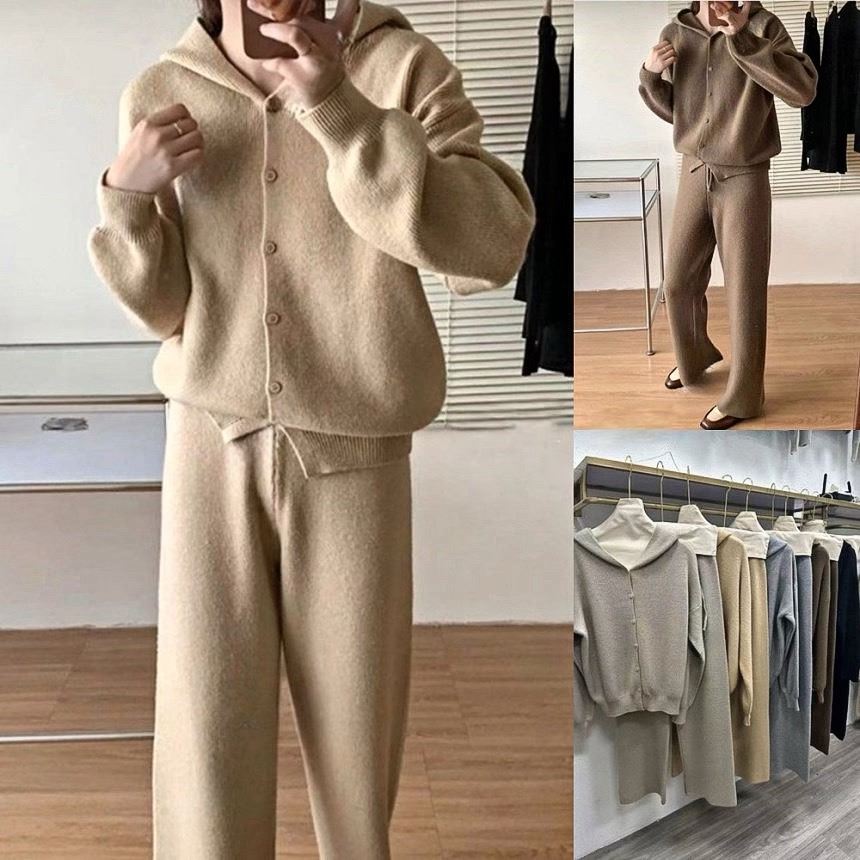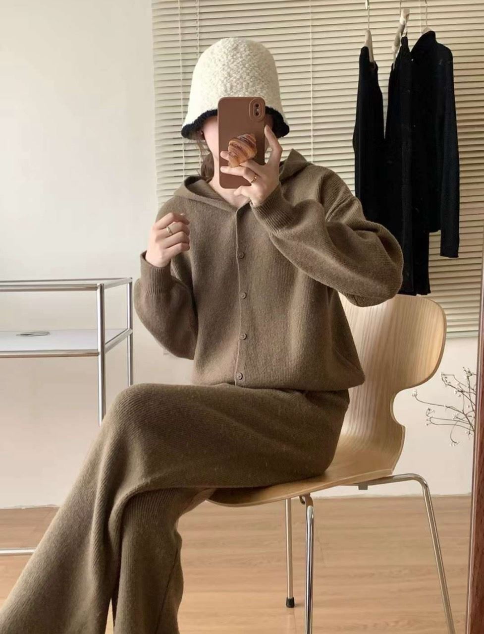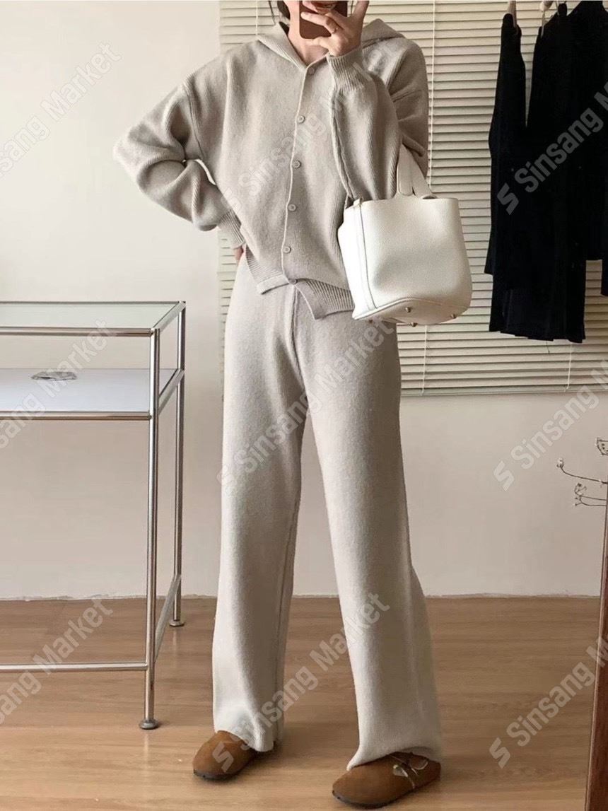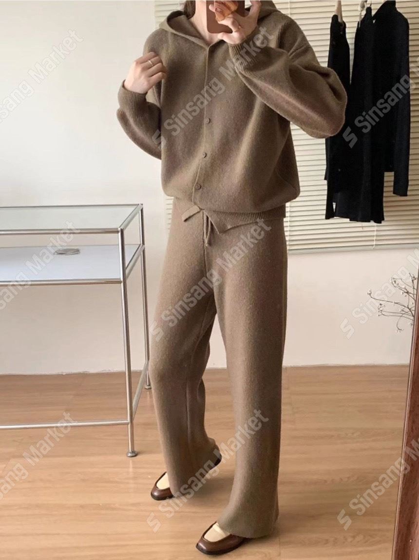 보들 후드 니트 가디건 밴딩 팬츠 세트