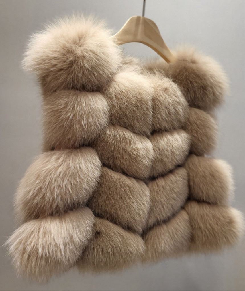 1등급 사가폭스퍼 4단 크롭 베스트 폼폼이베스트