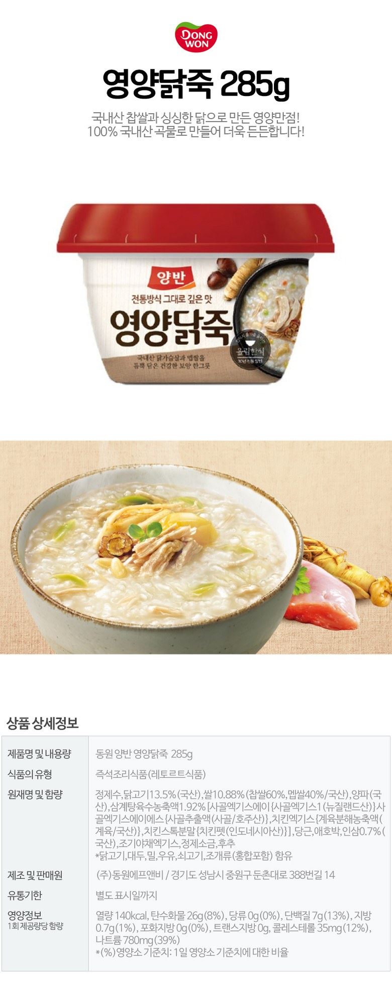 동원양반 영양닭죽 285g x 12입 / 비밀마켓님의 스토어 / 디비디비 / 구매하기 / 특가할인