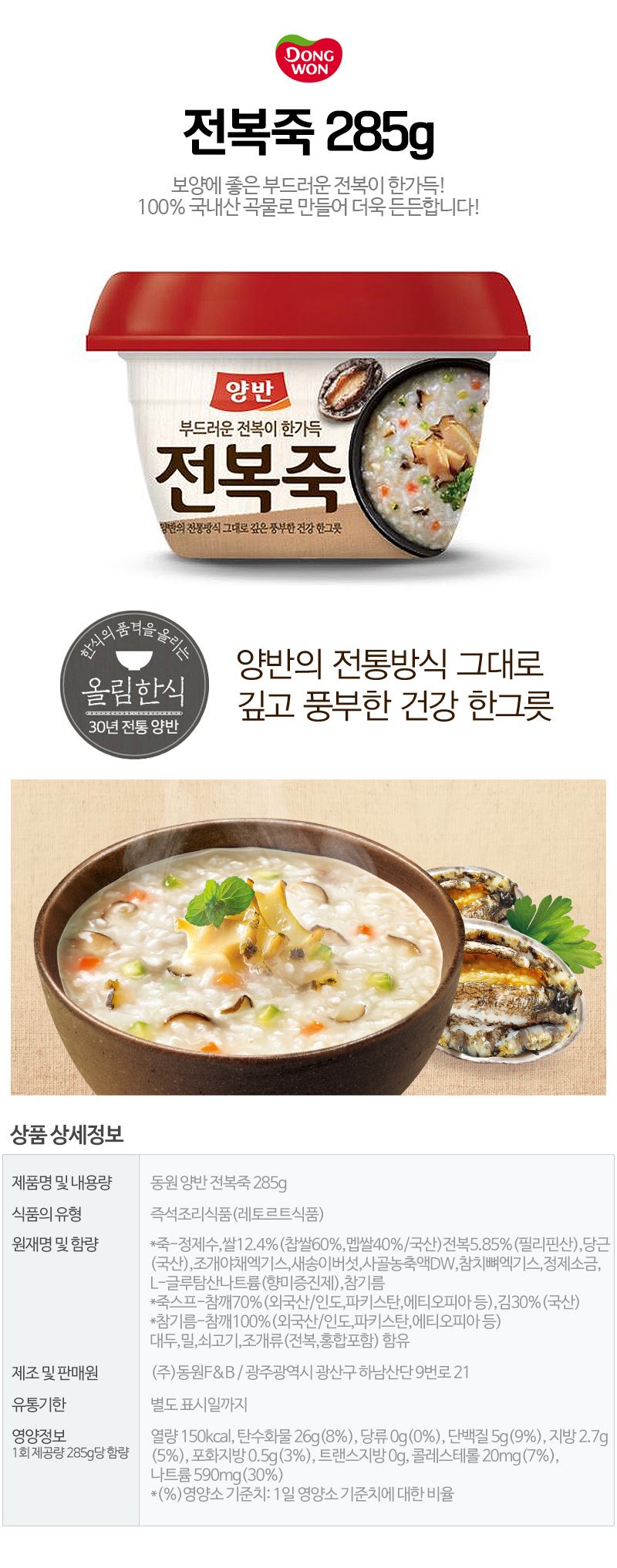 동원 양반 전복죽용기 285g  x  12입 / 비밀마켓님의 스토어 / 디비디비 / 구매하기 / 특가할인