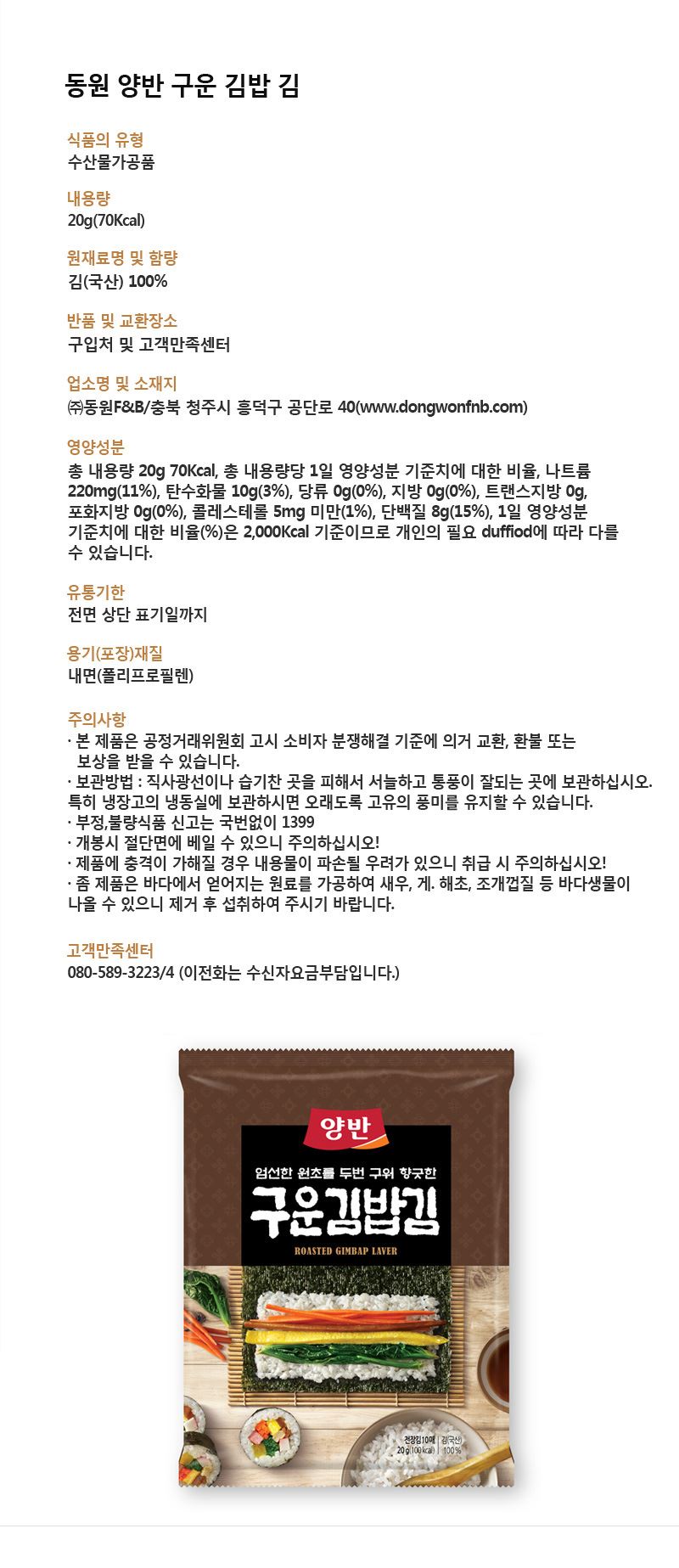 동원양반 구운김밥김 20g x 10매
