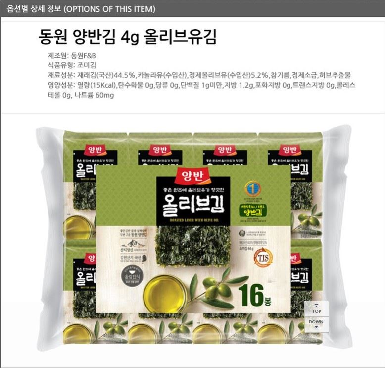 동원양반 올리브김 16단 (4g x 48봉) / 비밀마켓님의 스토어 / 디비디비 / 구매하기 / 특가할인