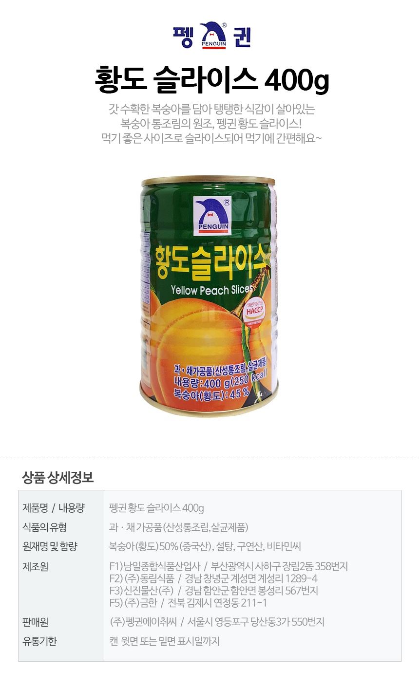 • 펭귄꽁치 400g x 5캔 + 황도슬라이스400g 무료증정