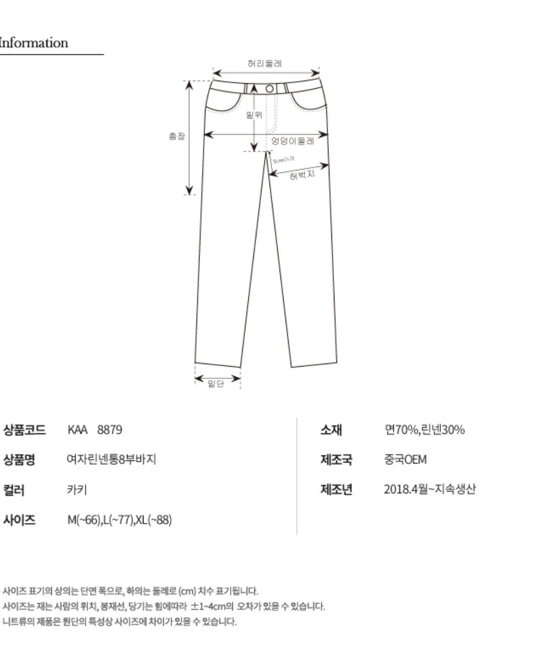 여자 린넨 통 8부바지 / 간지샵부산 / 디비디비 / 구매하기 / 특가할인
